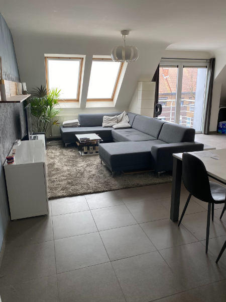 Ruim duplex appartement op de tweede verdieping! Living met open keuken, berging, apart toilet, 2 grote slaapkamers, badkamer met ligbad, enkele lavabo en toilet, Het appartement beschikt over een gezellig terras. Bij het appartement hoort ook een garagebox. Vaste algemene kosten 15€/maand en voor het poetsen gemeenschappelijke delen provisie van 20€/maand.