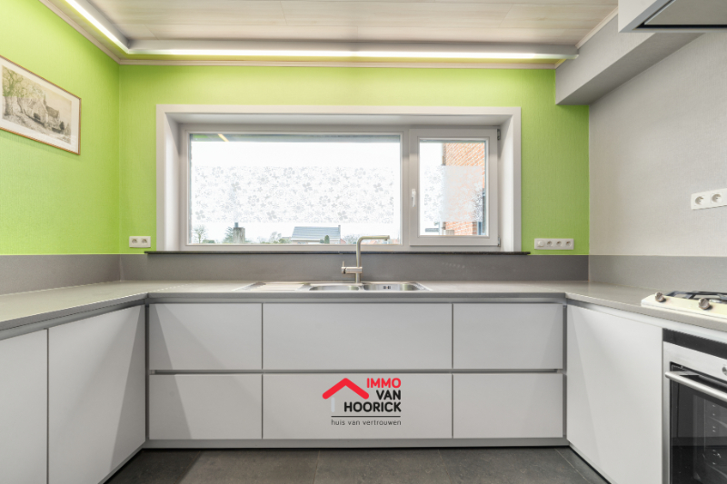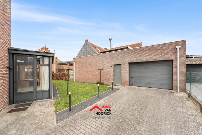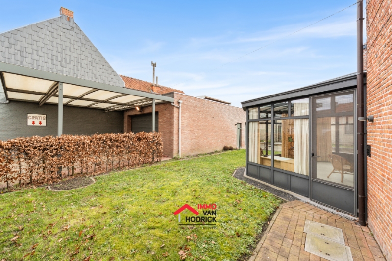 Inkomhal, leefruimte, keuken, eetplaats, berging, badkamer, veranda, terras, tuin en afzonderlijke garages 72m² + carport 39m²!